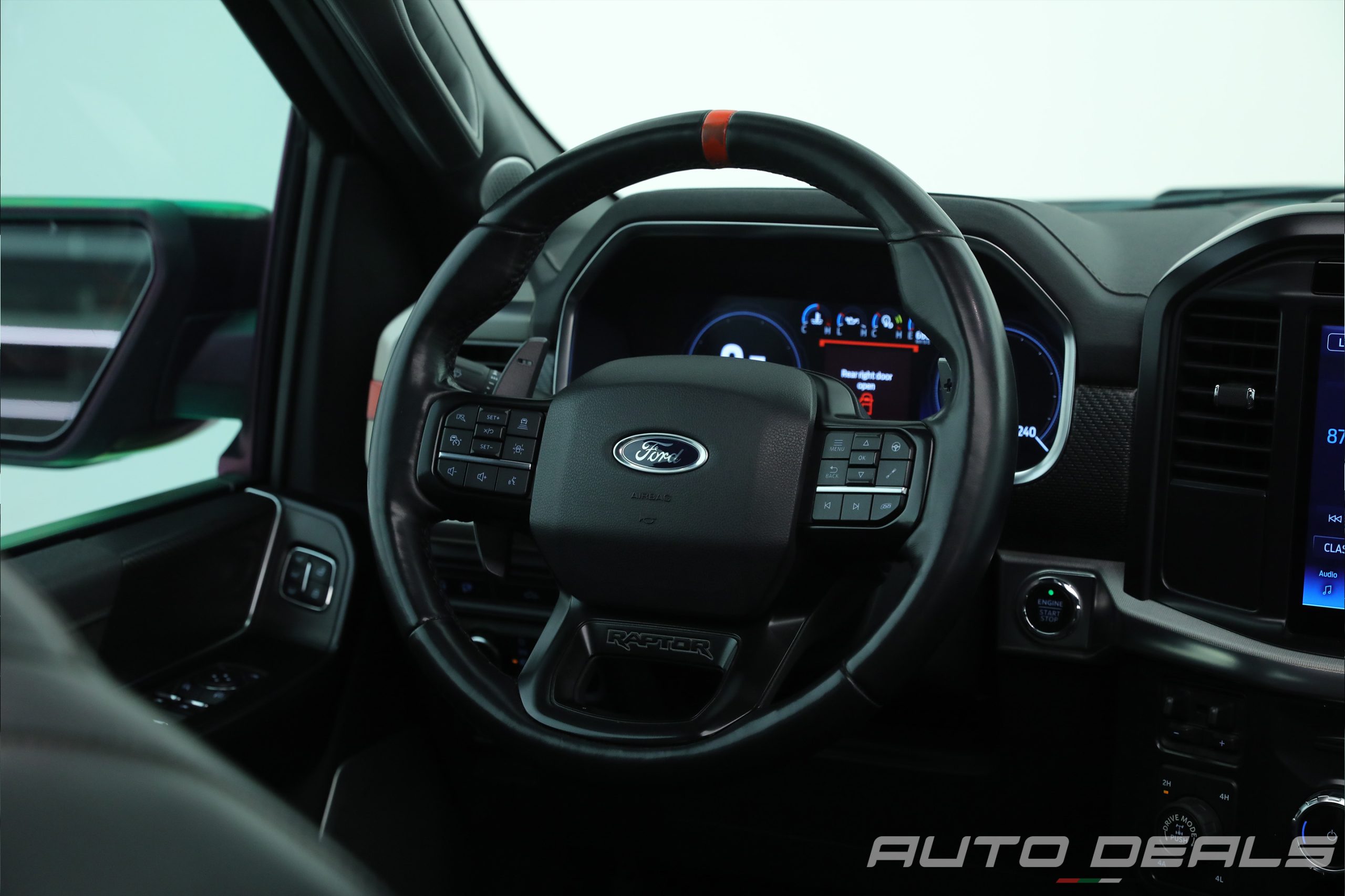Inside the cabin, the Raptor blends rugged functionality with modern comfort. Sport seats, durable materials, and digital displays create an interior that feels both practical and technologically advanced.