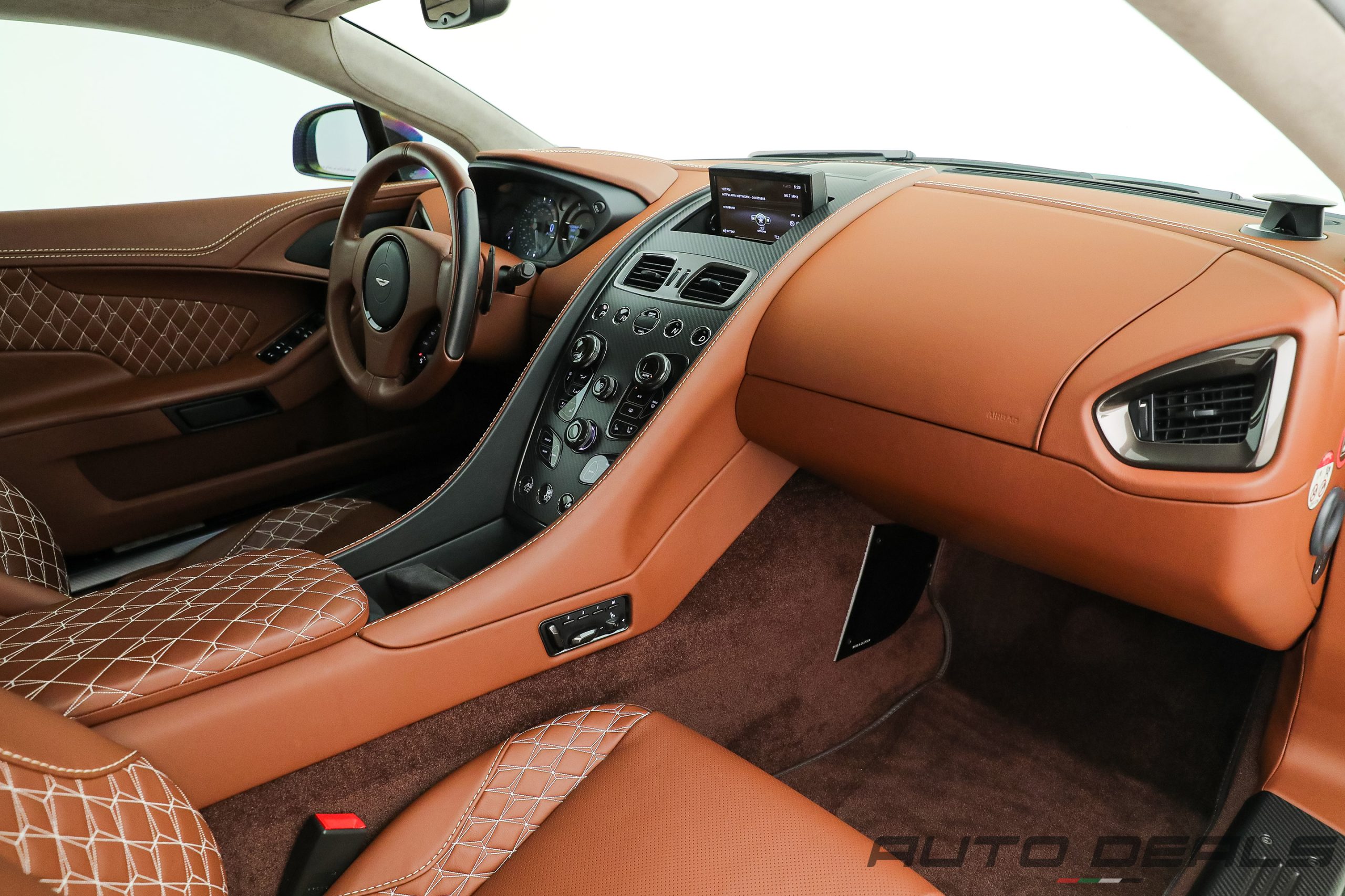 The innovation lies more in materials and chassis hardware: carbon ceramic stopping power, extensive exterior carbon trim, adaptive damping calibration, lightweight VH bonded aluminum architecture, and one of Aston Martin’s last fully hand-finished interiors before the company’s newer digital simplification phase.